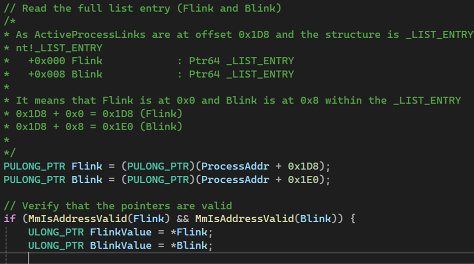 Firstly, before we apply bypass, we must verify if the terminating process has corrupted LIST_ENTRY.